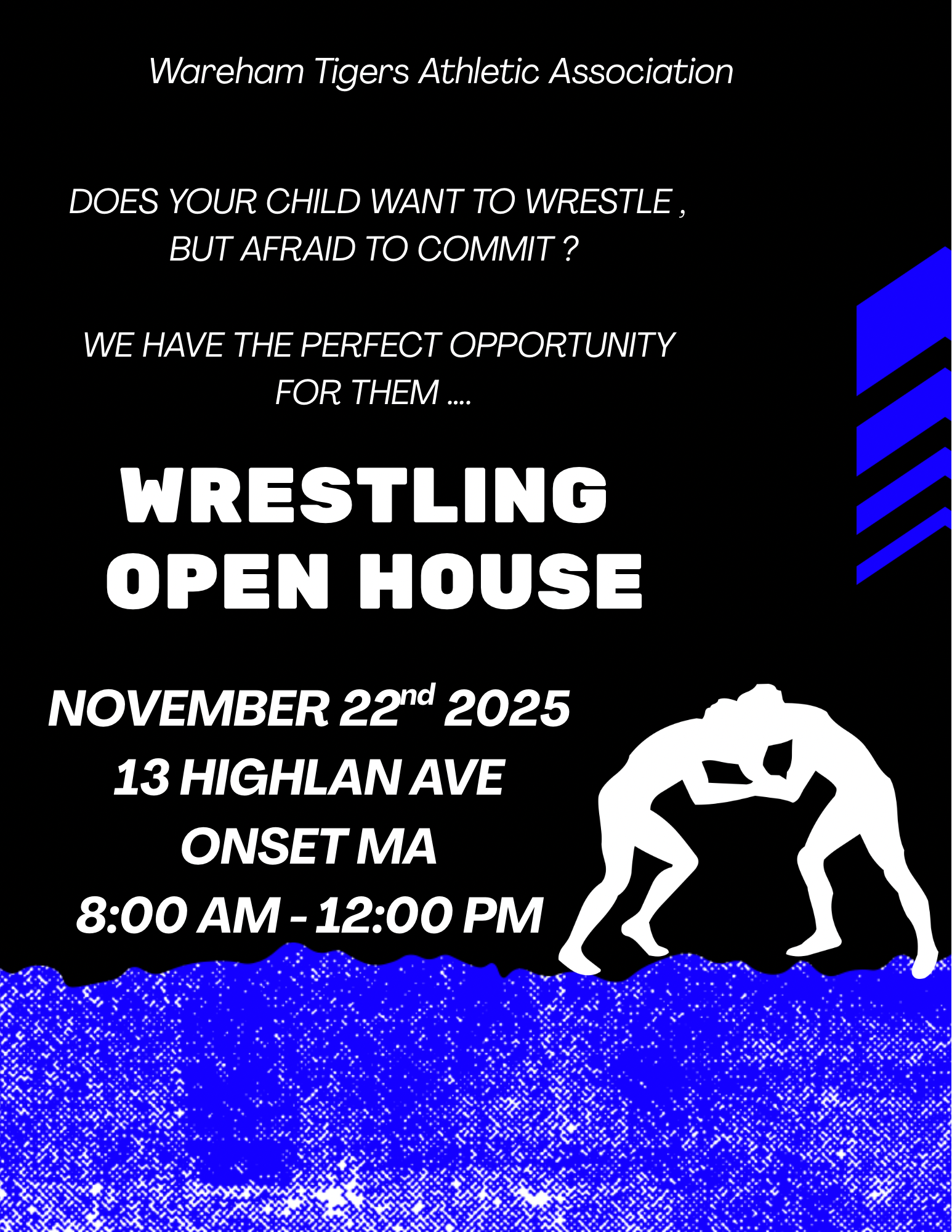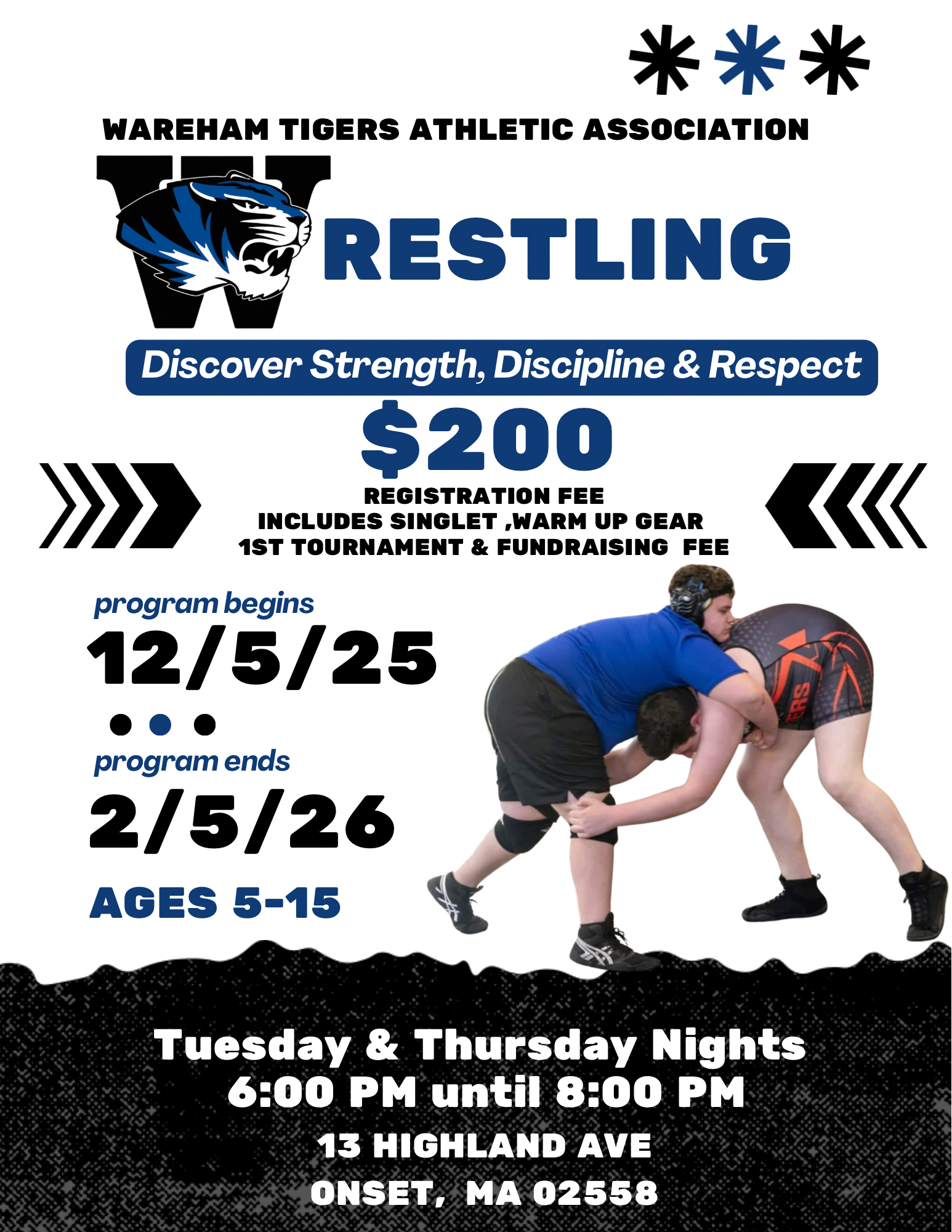 Discover strength, discipline, and respect with the Wareham Tigers Athletic Association Wrestling Program! π